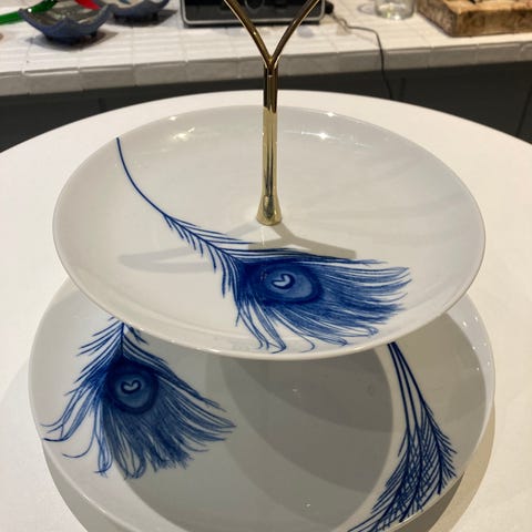 Selger en samling av serviset Peacock lansert av Magnor Glassverk og designet av Ari Behn.