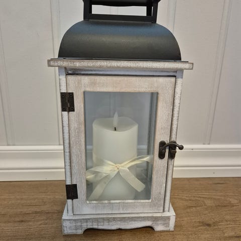Lykt med LED-lys. Fin i en dekorasjon. Fra Rusta.