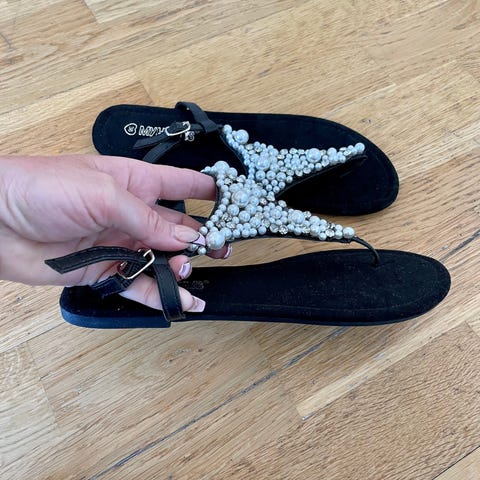 Superfine lekre sandaler med perler. Skoene er aldri brukt, og er størrelse 38. Jeg sender stort sett alltid første virkedag etter mottatt penger for frakt :)