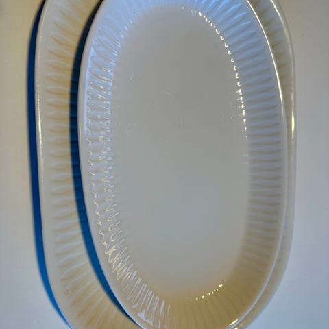 Serveringsfat i to størrelser og en serveringsskål.