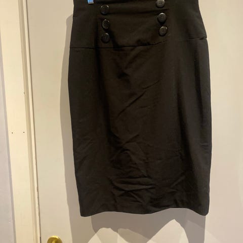 Livvidde (tvers over): 36 cm. Bredde bredeste punkt: 50 cm. Lengde 58 cm. Klassisk sort penskjørt/blyantskjørt som ser veldig ubrukt ut; som nytt. Kan sendes.