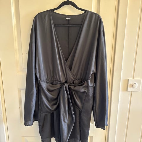 Lite brukt svart kjole med lange ermer selges rimelig. Laget av polyester og elastan. Svært behagelig og faller fint. Str. M.