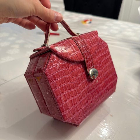 Superfin rosa liten clutch. Vesken er aldri brukt og er laget i polyuretan. Størrelse: 16cm bred, 12cm høy og 5-6cm dyp. Jeg sender stort sett første virkedag etter mottatt penger for frakt :)