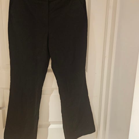 Sort bukse, glinsende stoff, sleng