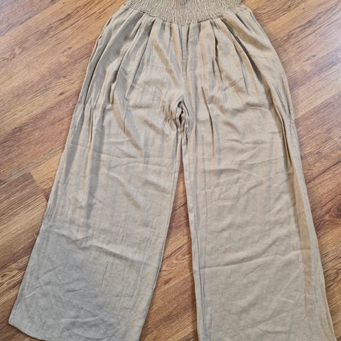 Lett bukse i polyester stoff med fransk inspirert mønster. To side lommer, glidelås foran. Lengde ca 100 cm, midje ca 70 cm i omkrets, har elastisk del og kan stretches en del