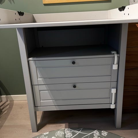 ByBo stellebord selges. Smalt, men samtidig god plass og solid. Tåler hele 50 kg. Passer perfekt på små bad. Opprinnelig hvitt, men vi har malt det svart. Bør males på nytt i en ønsket farge.