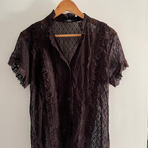 Nydelig bluse fra Tara, svart farge, kreppet behagelig polyester kvalitet. Str. S. Kan passe S-M. Brukt en gang.