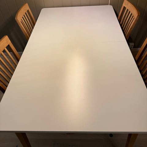 Husk bordet er brukt og har vært på lager nå i 2 år, så derfor noen ripper her og der, se bildene her.