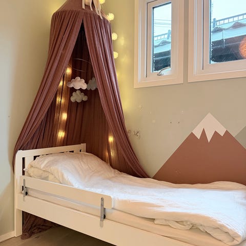 4. Har også sengehimmel og nattbord med stol. De kan selges separat for 500 kr.