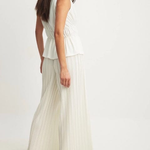 Charlotte bukse, sesongens diggeste bukse. Masse vidde, høy i livet, bred strikk med snøring i liv, lommer, bred oppbrett på lengeden. Buksen er laget i et crispy, men mykt og florlett stoff.