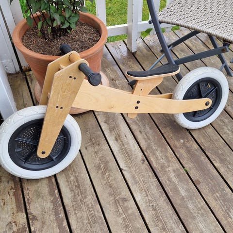 Selger en meget sjarmerende barnesykkel for de små som ikke kan sykle. Den er uten pedaler, så det er en leke- og gåsykkel. Justerbar setehøyde.
