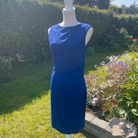 Fra Carla F. Ubrukt med lapp. Merket 44 men vet ikke om Carla F er små i str? Virker mer som 42 for meg. Stoffet ser ut som helsilke (er ikke det) nydelig blåfarge. Innsvinget i livet. Kostet 1299 ny. Passer meg dessverre ikke. Flere plagg ute. Ta kontakt før evt samsending. Røyk og dyrefritt. Ferdig prutet! Fix ferdig eller vipps/posten.