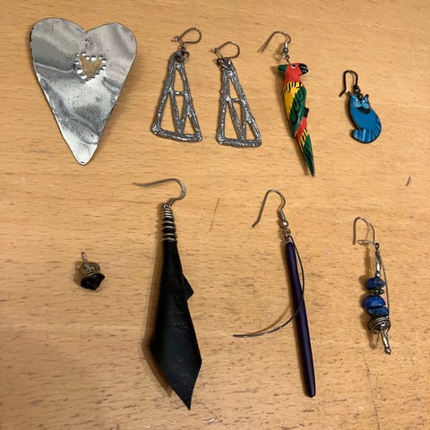 Mye ørepynt må ut av smykkeskuffen, fordi eier har for liten plass.
