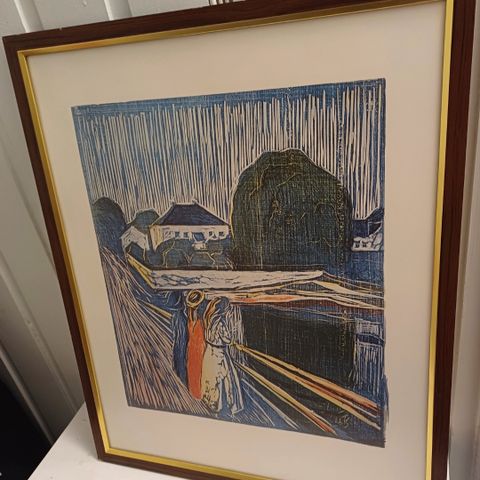 Afrikansk kunst i kobber med ramme i tre, kjøpt i 1983.