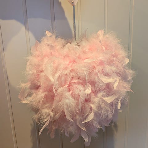 Ny lampe fra Lilou lilou. 40 watt. En herlig taklampe. Den strikkende lampeskjermen gir et harmoni inntrykk og gjør ekstra koselig på barnerommet. Sokket, ladning og takkop med sukkerbit,medfølger.
