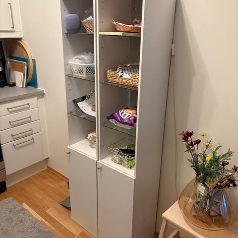 3 nye glass skap fra IKEA 2 inn karton et montering. Pent med 3 glass hyller til hvert skap. Selges samlet kr:1000.