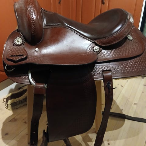 Ubrukt westernsal selges. Str. 14, tilsvarer ca buksestørrelse 34. Den er kun prøvd på islandshest. God sal å sitte i.