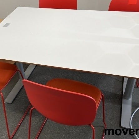 Møtebord i hvitt, 160x120cm, grått T-ben understell fra Holmris, passer 4-6 pers