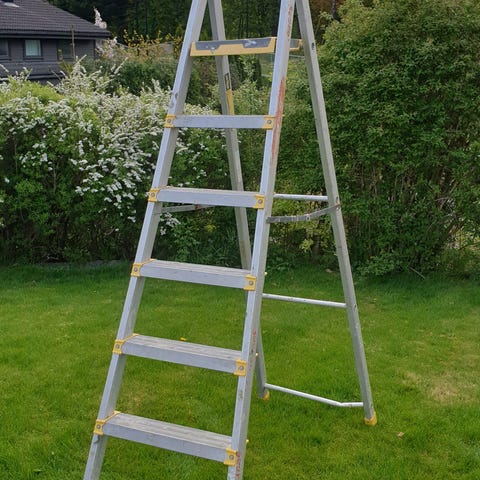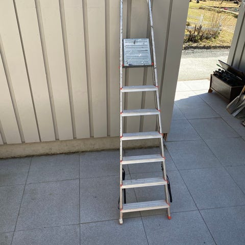 Hvorfor eie når du kan leie gardintrapp for 100 kroner per dag? Pris ved langtidsleie kan diskuteres. Gardintrappen har 7 trinn + verktøysbrett. Høyden ved verktøysbrett er 165 cm.