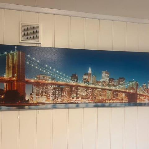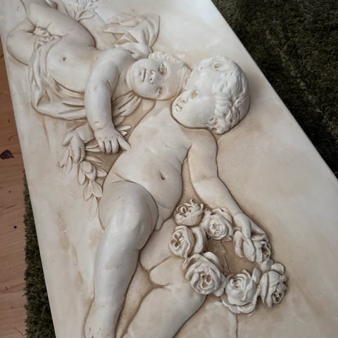 Har ett pent malt gipsbilde som er blitt limt , men det synes ikke med oppheng på toppen, og pent brukt