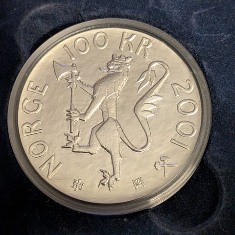 Nobel Fredspris 100 år Sølvmynt 100,- selges 600,-