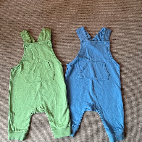 Mulig er de 68 i str men tror kjøpte den ene som en 74 men står ikke noe str i dem. Den grønne er litt større enn den blå selv om de ser ganske like ut.