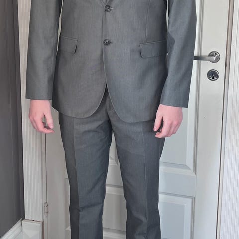 Blå dress med hvit skjorte fra Dressmann. Brukt to ganger.