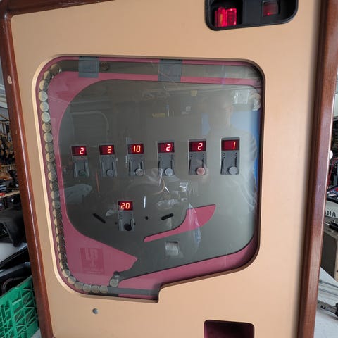 Søkeord: automat, spilleautomat, mancave, arkadespill, gameroom, kronespill, knipsekasse, røde kors, jukebox, jukeboks.