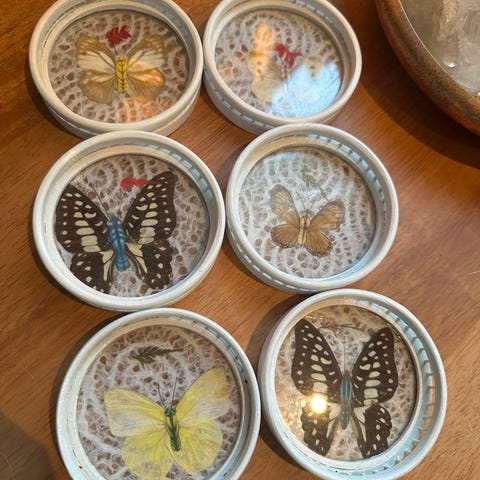 Nydelig retro brett med bord brikker med sommerfugler selges kan hentes eller sendes mot at kjøper betaler porto