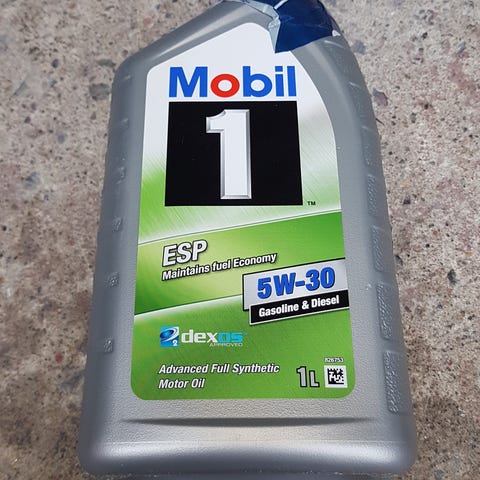 Mobil 1 5W-60 fullsyntetisk olje selges. Ca 1,75 liter.