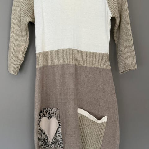 Lite brukt med lekkert bærestykke i front og glidelås i siden. Fine farger. I lett bomull med noe stretch. Sender gjerne med fiks ferdig.