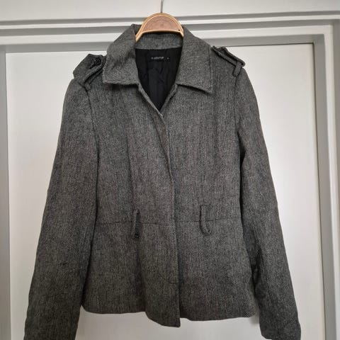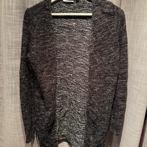 Lett jakke i nydelig sort/beige mønster. Sidelommer og splitt på hver side. Lite brukt og genial å ha over det meste.