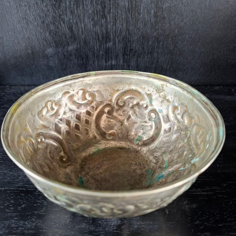 En blomsterpotte / pyntepotte i sølvfarge selges, kjøpt hos floriss , som ny, hentes her