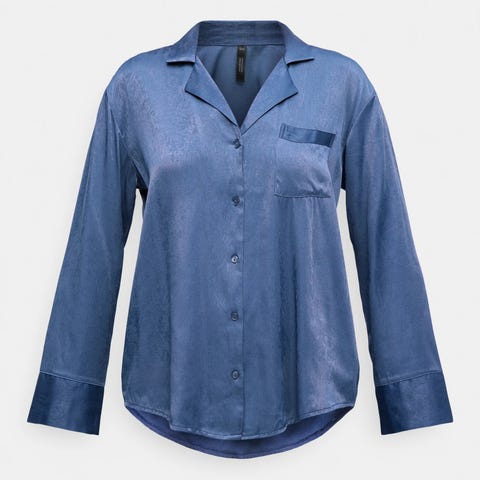 T-skjorte i sateng fra Primark. Tror det egentlig er pysj, men har brukt den som vanlig topp. Vide armer og vid passform. Like fin å brukes kneppet igjen eller åpen. Lite brukt og fremstår som ny. Str 40, men passer fint til xs-l utifra hvor oversized man vil ha den