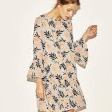 Dette er en kort blomstrete kjole i str 44 den er kjøpt på En nettbutikk Zalando jeg har ikke røyket så den lukter ikke vondt