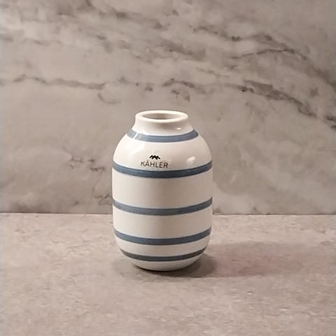 3 pene håndmalte omaggio vaser fra Kähler i fargen hvit og sølv selges samlet for 180kr.