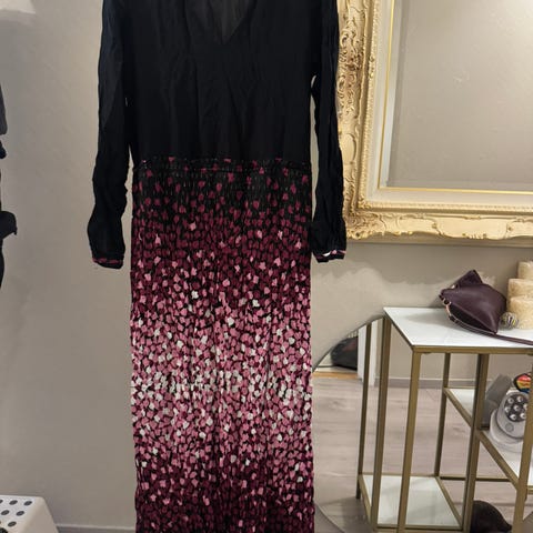 Kjempe fin lang silkekjole i str.40.Ble brukt kun en gang.