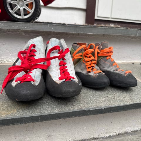 Har også hjelmer, seler, via ferrata slynger og buldrepadder.