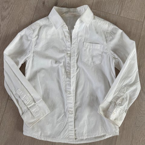 Hvit skjorte for 5 årig barn. Brukt et par ganger. Røykfri hushold. Kan sendes eller hentes på Stathelle. Se mine andre annonser for barneklær. Kjøper du samlet betaler du en gang porto.