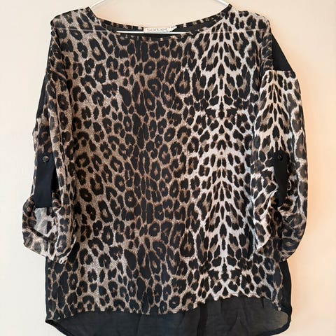 Den går inn i livet og er elastisk i dette området. Omkrets midje uten at jeg tar ut stretch ca 86. Hvis jeg stretches den mot max er omkrets ca 100 cm. Lengde rygg ca 62 cm