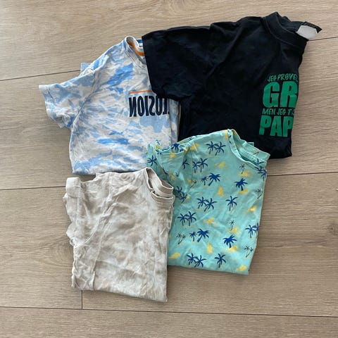 9 stk T-skjorter. Hele og pene. Flekkfrie ( så langt jeg kan se. Er nøye med flekkfjerning).