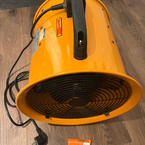 Leier ut en dustec byggventilator. Kan brukes som avsugsvifte eller tilluft.