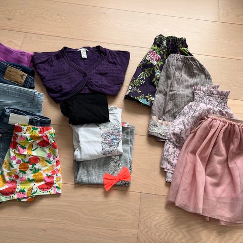 Nydelig klespakke. 3 skjørt, ei jakke og en pusete vest. Str. 110
