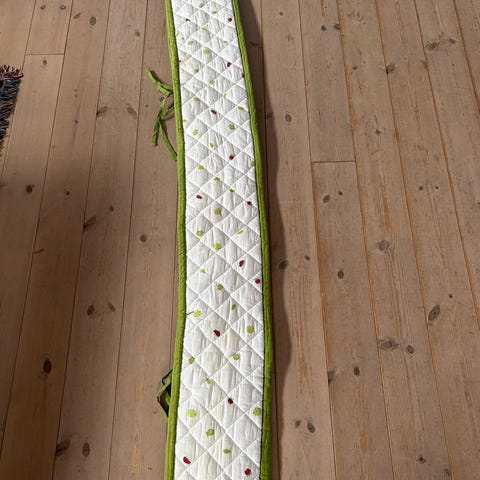 Nr 1: hvitt-beige/ dynetrekk og putevar med prikker og stripper på laken.