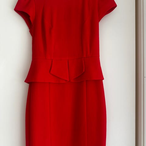 Nydelig rød kjole, aldri brukt KRINÈS Berlin .Str. 36. 92% viskose, 8 % elastan. Tettsittende. Kan passe flere størrelser pga stretch. Gi bud.