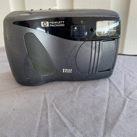 Arvet hp GRLYB-0310 digitalkamera selges. Tilstand ukjent, men skal etter sigende være i orden ved plassering av batterier (4 stk AAA) skulderrem og linselokk medfølger som eneste tilbehør.