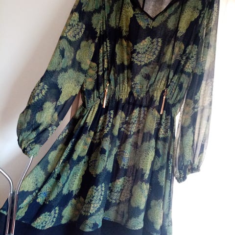 Utrolig fin kjole fra Frankremme i en kjempe flott purpur/dyp rosa farge. Str. 36. Det er velour. 50% silke og 50% rayon. Kjopt for 5000,-.