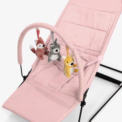 Vippestol til dukke (lilla og rosa). Litt bruksslitasje under. Noen merker oppå, men helt grei. Kan sende mot porto.