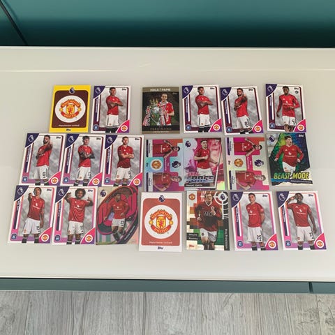 En kortstokk med kjente spillere fra Manchester United Fotball lag.