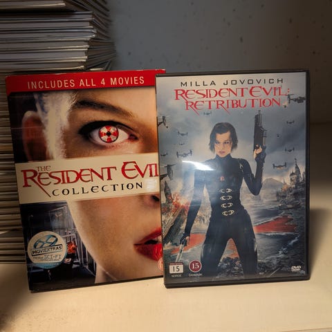 5 filmer i serien om Resident Evil, med Milla Jovovich i hovedrollen.
